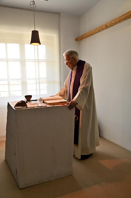 P. Vital mašuje v kapeli Ignacijevega doma. Avtorja slike: Liljana in Peter Bole.